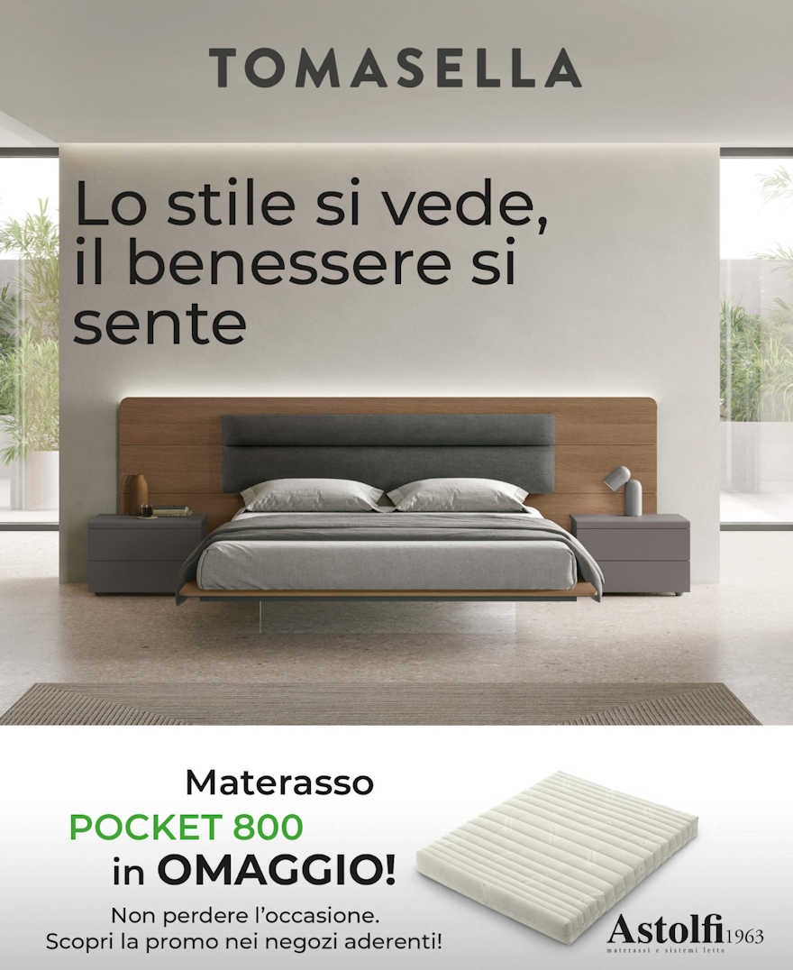 Acquistando una camera da letto Tomasella dal 1° febbraio al 30 aprile 2026, ricevi in omaggio un materasso Astolfi1963 Pocket 800 H22, progettato per garantire un sostegno ergonomico e un comfort elevato notte dopo notte. Una promozione esclusiva che unisce design, qualità e benessere, pensata per chi vuole arredare la zona notte senza compromessi.   […]